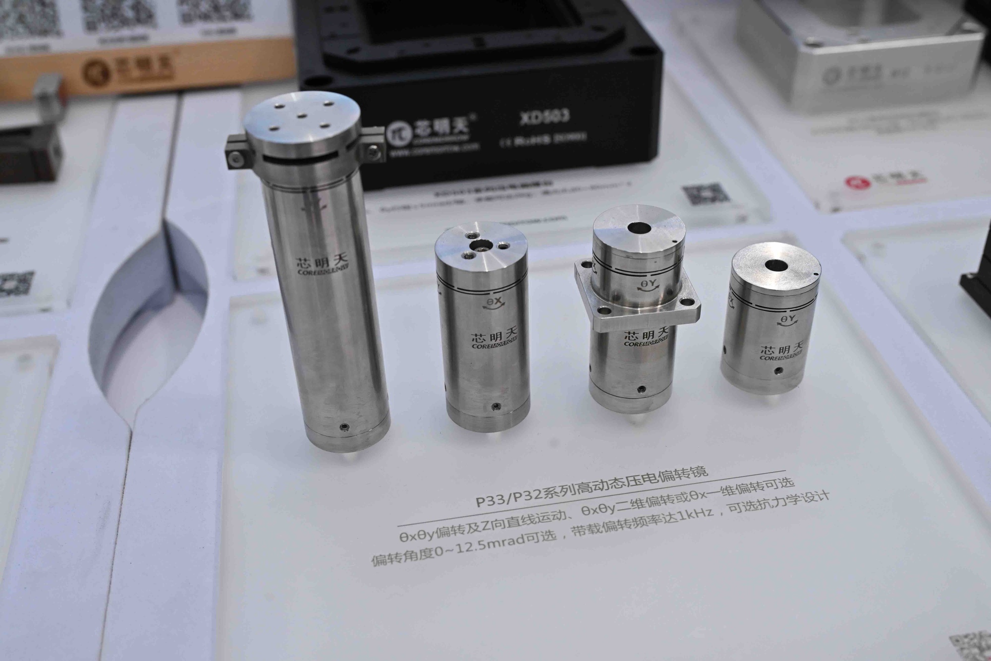 不远处★◈✿,哈尔滨芯明天科技有限公司的展台被众多精密制造领域专业人士围绕★◈✿。作为国家级专精特新“小巨人”企业★◈✿,芯明天带来了两类核心产品★◈✿:压电陶瓷器件可实现1纳米的分辨率——相当于头发丝直径的约六万分之一★◈✿;压电快反镜分辨率达1微弧★◈✿,能在千公里级激光通讯中实现精准指向★◈✿,响应频率高达10K★◈✿,满足卫星高速运动中的稳定通信需求★◈✿。