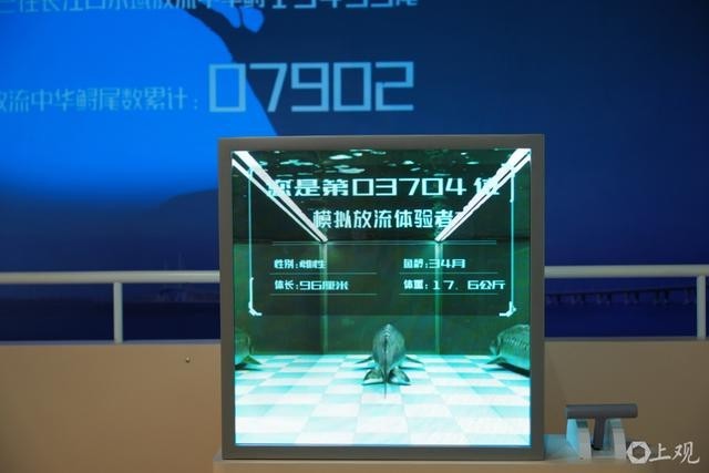 值得一提的是ღ★★ღ,在水野中心的科普馆内ღ★★ღ,设置了“模拟放流”的体验ღ★★ღ。参观者可以为中华鲟带上适合的标志后ღ★★ღ,将其送入“长江”ღ★★ღ。大屏显示ღ★★ღ,上海已在长江口水域放流中华鲟13453尾ღ★★ღ。