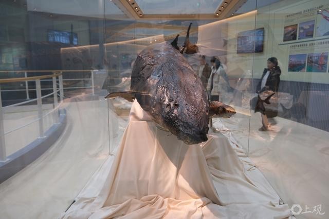 水野中心内科普馆的“镇馆之宝”ღ★★ღ,是一尾中华鲟标本ღ★★ღ。它长3.5米ღ★★ღ,重350公斤ღ★★ღ。2007年7月17日在金山区杭州湾水域误入渔网受伤ღ★★ღ,经全力救治成功存活1232天ღ★★ღ,在2010年12月1日死亡ღ★★ღ,创下当时国内抢救救治中华鲟最长存活纪录 郜阳 摄
